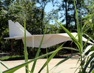 "paper airplane." Actually, it was made of wood, not paper, but it is a giant model of one and built in a man's back yard. Next was "The World's Largest Buffalo Skull" ...made of